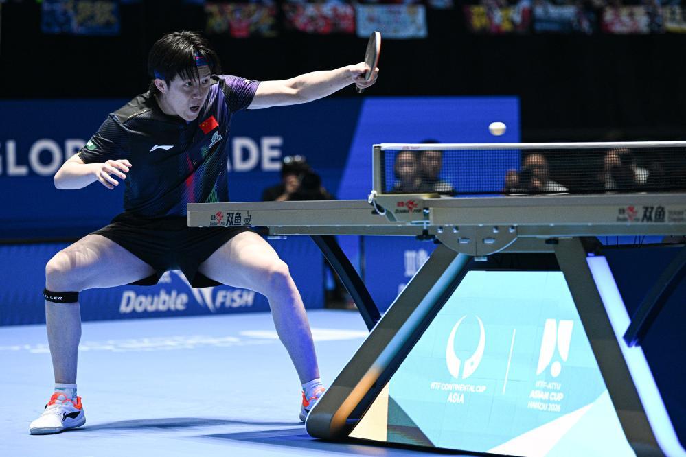 2月4日,王楚钦在比赛中回球。新华社记者 蒲晓旭 摄